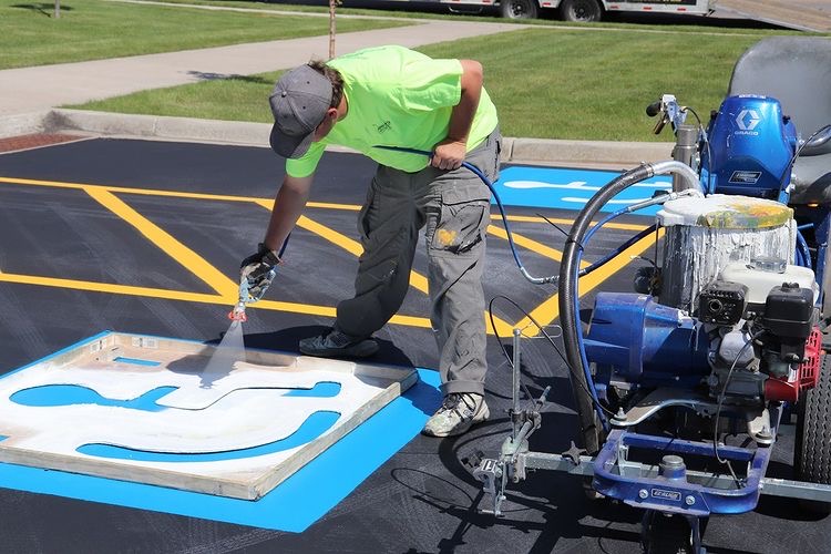 Striping and restriping parking lots, roads, crosswalks, and more , such as parking stall lines, handicap space stencils and hash marks, speed bump striping, directional arrows, traffic dividing lines, no parking zones, and safety signage.